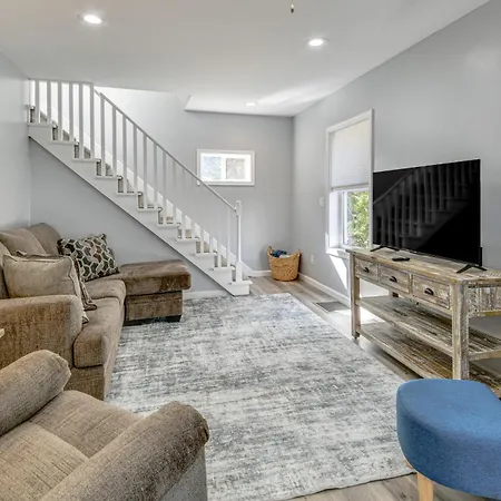 Walk To Main Street! Updated Norwich Home comes with a bathroom with a separate toilet, a shower, and a washing machine. A hair dryer and bath sheets are included for added comfort.